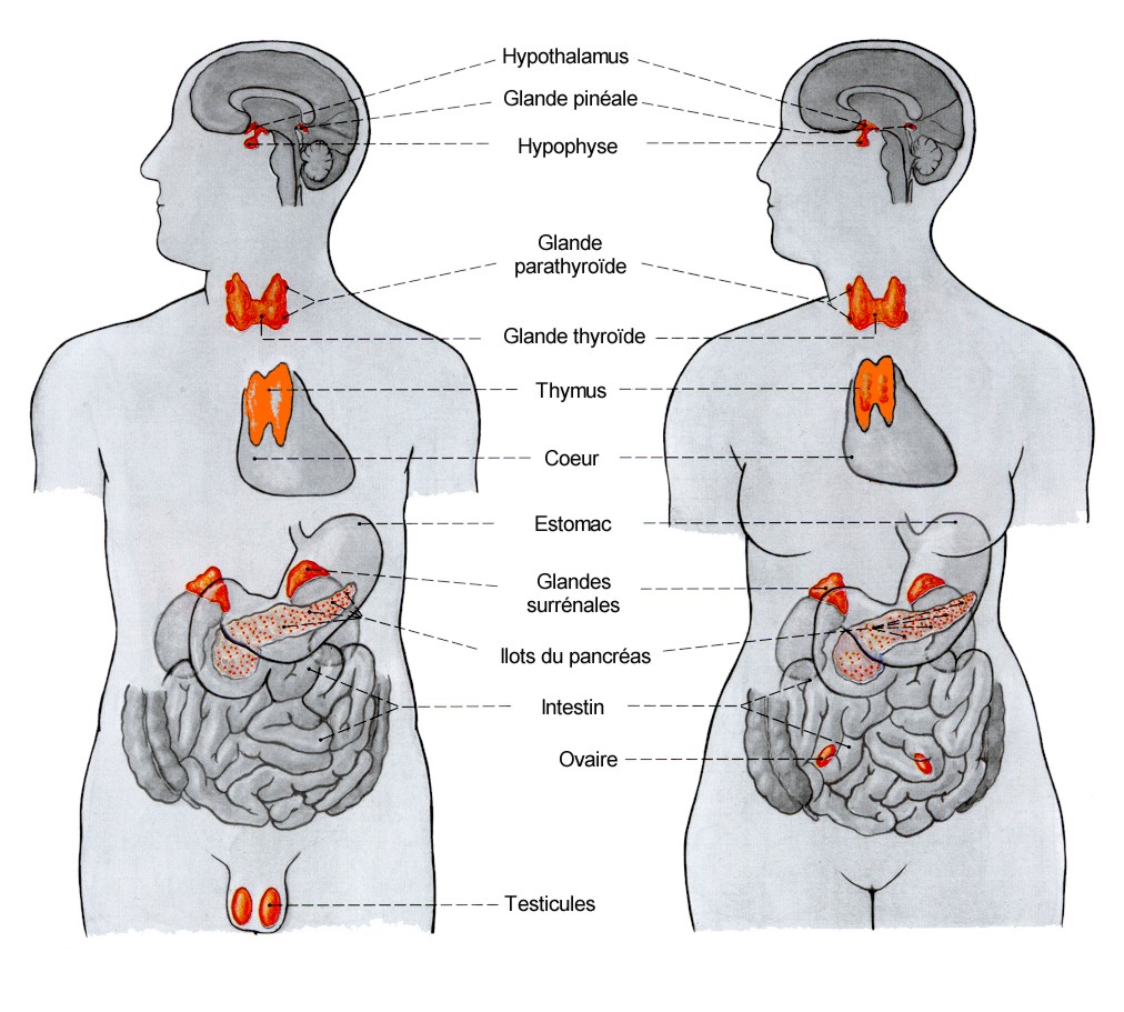Voici les différentes glandes hormonales concernées :