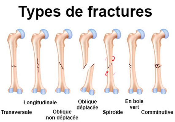 La fracture osseuse est une fracture partielle ou complète d'un os (os cassé), pouvant survenir spontanément, en raison d'affections comme l'ostéoporose et les maladies chroniques associées (ex : la maladie des os de verre) ; ou résulter d'une chute ou d'un traumatisme (ex : accident de la route, accident ors d'une activité sportive…).